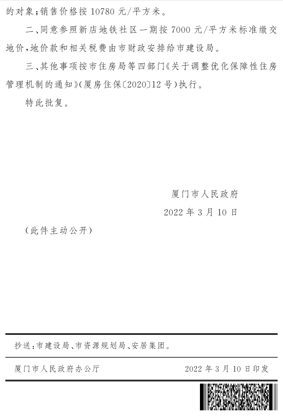 近日,廈門市人民政府發(fā)布關(guān)于新店保障房地鐵社區(qū)林前綜合體保障性商品房批量銷售有關(guān)事項的批復(fù)。