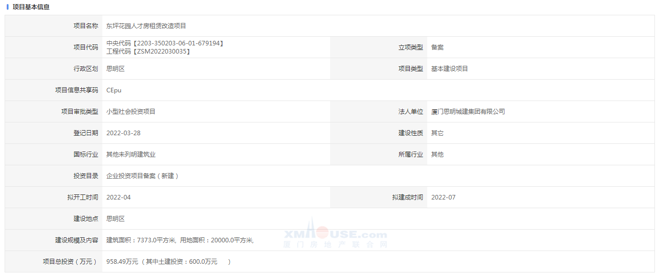 近日,東坪花園人才房租賃改造項目報建信息公布。