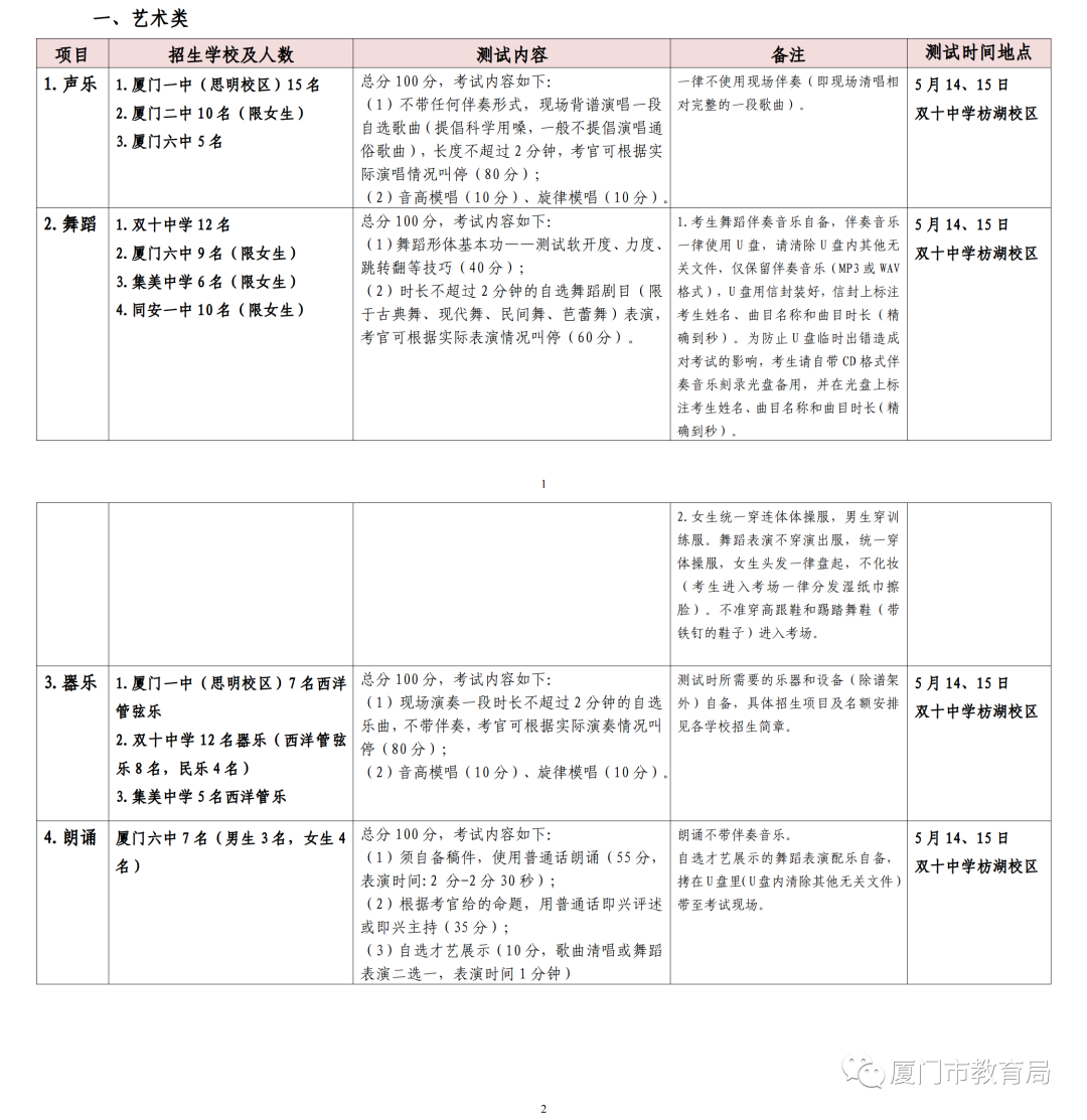 2022年廈門市教育局直屬公辦高中體育藝術(shù)類自主招生特長測試內(nèi)容已出爐,大家快來看看: