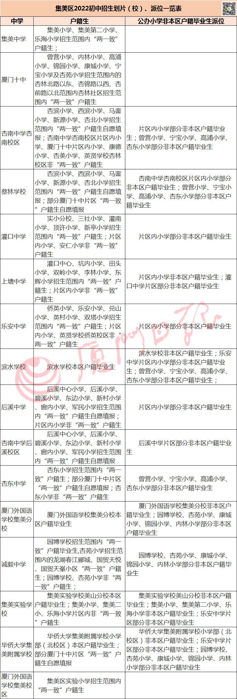 【積分】:廈門積分入學細則 | 【劃片】:小學劃片+對應(yīng)初中 | |