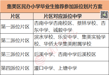 ?。?)其父(母)親為集美區(qū)戶籍的,根據(jù)其戶籍所在片區(qū)安排入學;