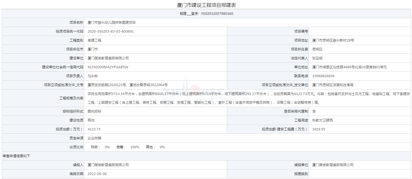 剛剛,廈門市振興幼兒園拆除重建項目最新報建信息公布。