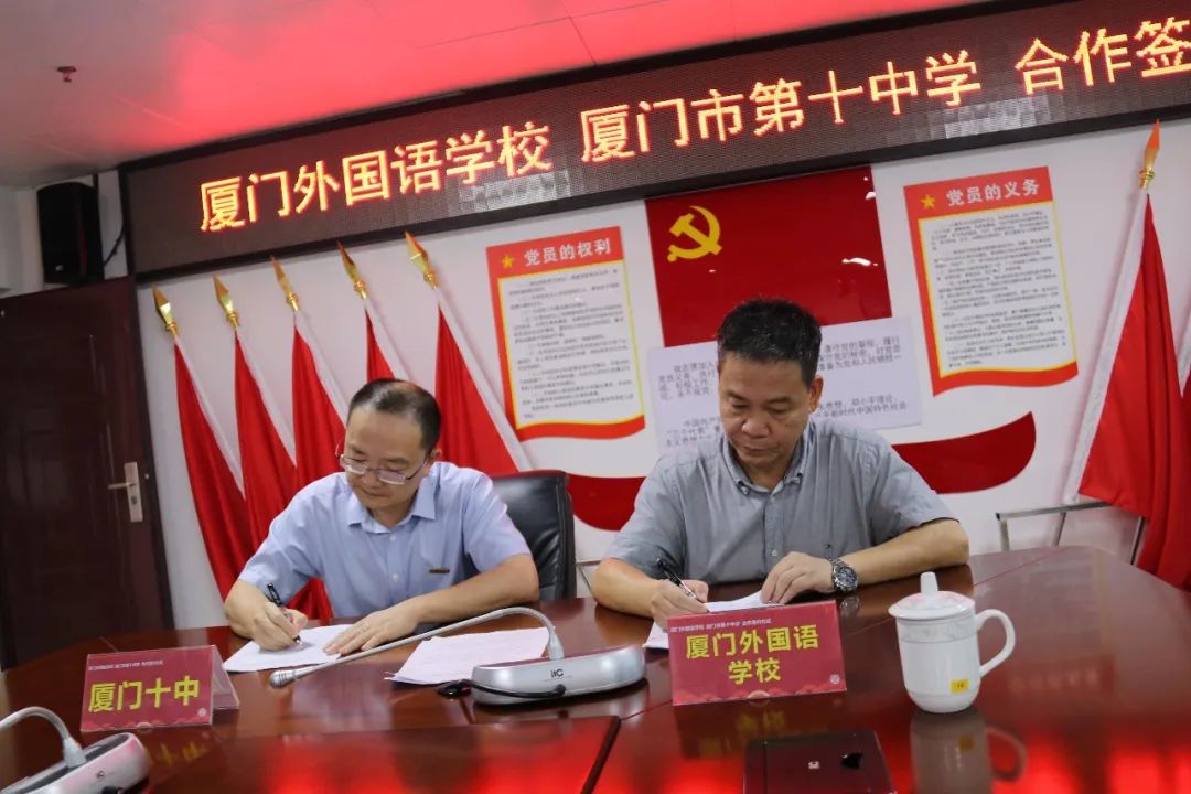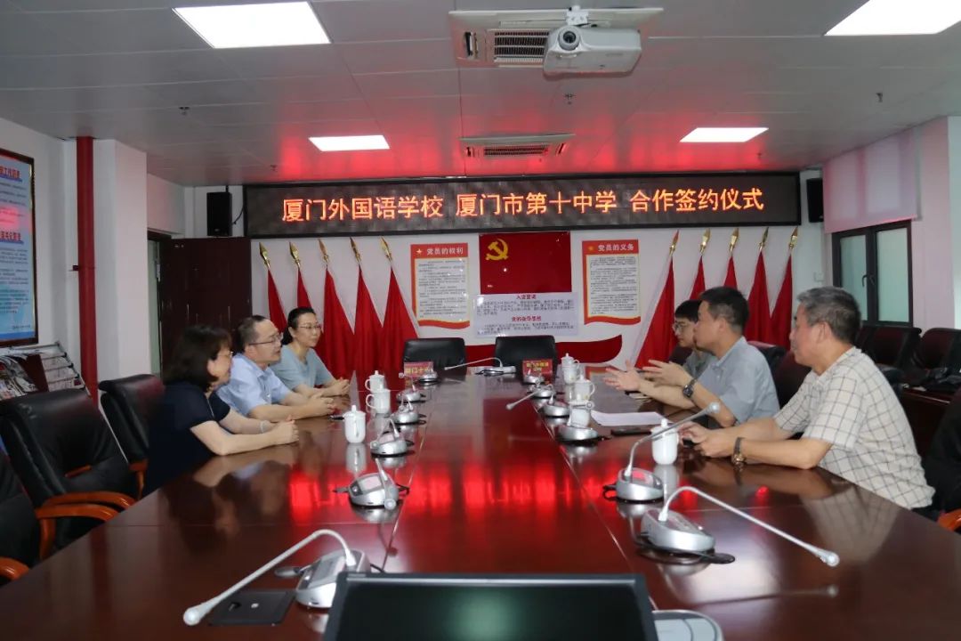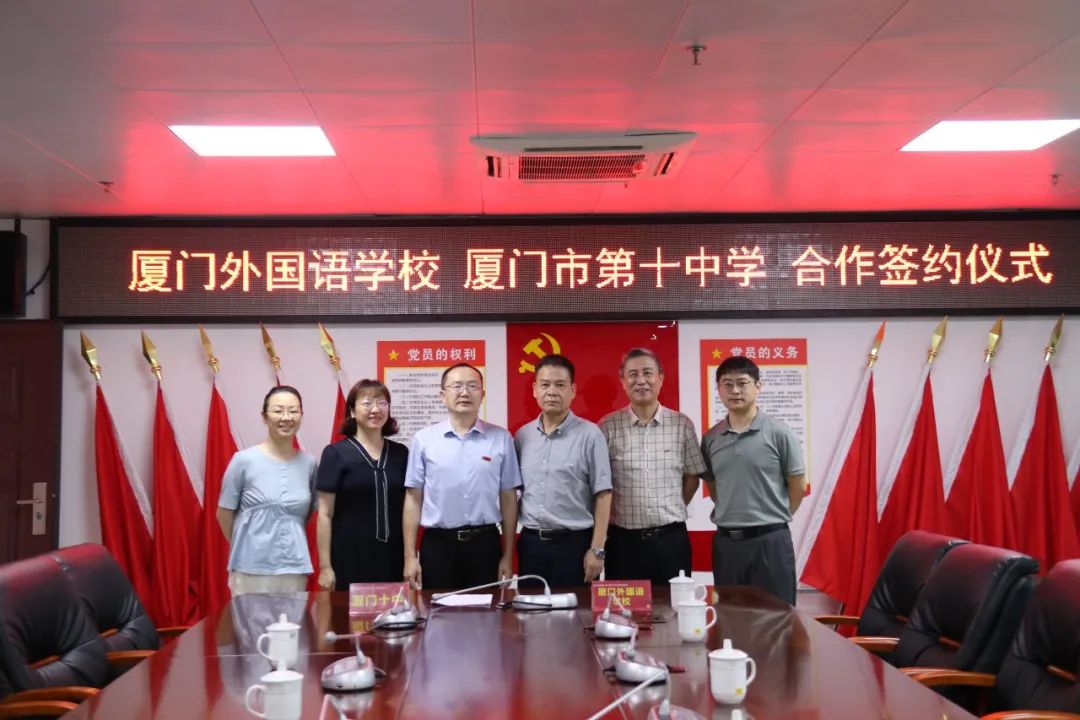 為了充分發(fā)揮廈門外國語學(xué)校作為全國文明校園和福建省首批示范性普通高中校的示范輻射作用,促進教育均衡發(fā)展,在廈門市教育局的指導(dǎo)下,經(jīng)雙方多次溝通協(xié)調(diào),2022年6月14日,廈門外國語學(xué)校與廈門市第十中學(xué)舉行兩校結(jié)對共建儀式。廈門外國語學(xué)校副校長鄭遠鵬、教研室主任鄒春盛、辦公室副主任王承琦和廈門市第十中學(xué)校長遲建偉、副校長張秀紅、教科室主任鄭梅凱參加本次活動。
