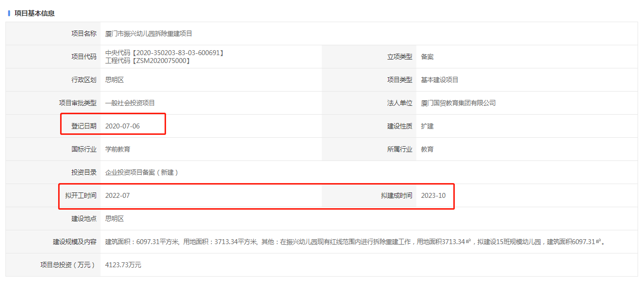 本月初,廈門市振興幼兒園拆除重建項(xiàng)目最新報(bào)建信息公布。