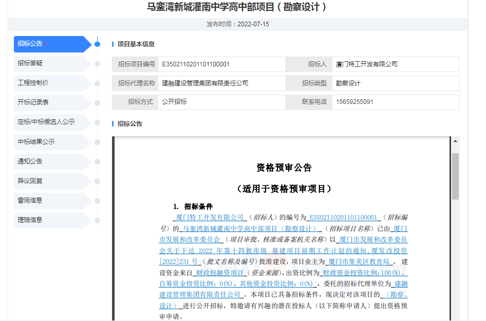 近日,馬鑾灣新城灌南中學(xué)高中部項(xiàng)目(勘察設(shè)計(jì))招標(biāo)公告發(fā)布。