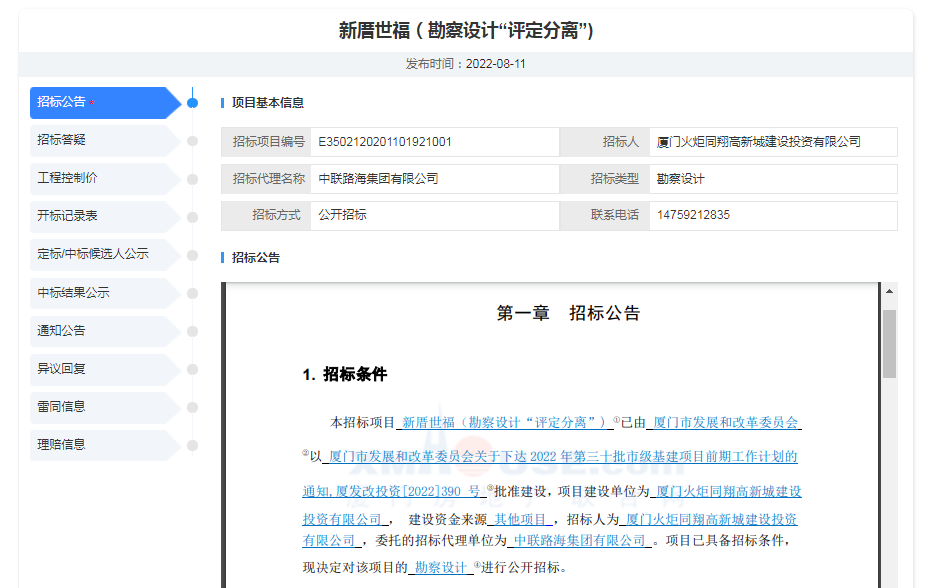 近日,新厝世福(勘察設(shè)計(jì)“評(píng)定分離”)招標(biāo)公告發(fā)布。