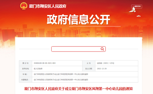 近日,廈門市翔安區(qū)人民政府發(fā)布關(guān)于成立廈門市翔安區(qū)鳳翔第一中心幼兒園的通知,為解決新析置街道公辦幼兒園短缺問題,進(jìn)一步提升翔安區(qū)幼兒園教育辦學(xué)水平,辦好人民滿意的教育,經(jīng)翔安區(qū)人民政府第112次常務(wù)會議研究,決定:成立廈門市翔安區(qū)鳳翔第一中心幼兒園。