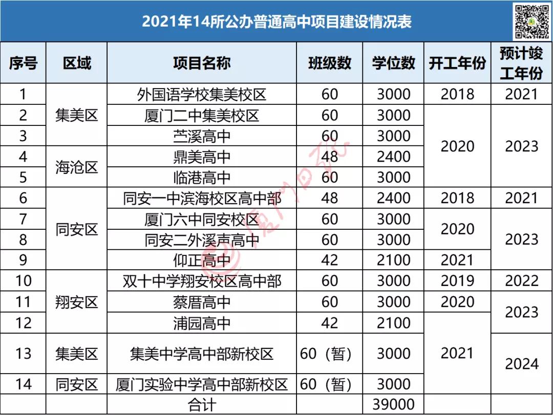 14所普高信息見附表,其中,廈門外國語學(xué)校集美校區(qū)和同安一中濱海校區(qū)高中部已經(jīng)在今秋投入使用。