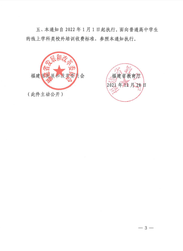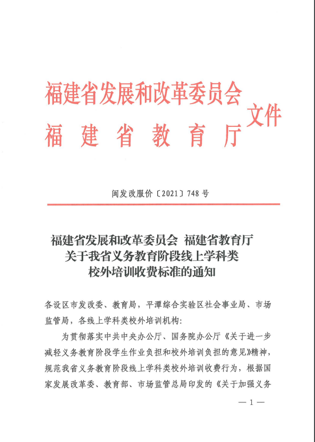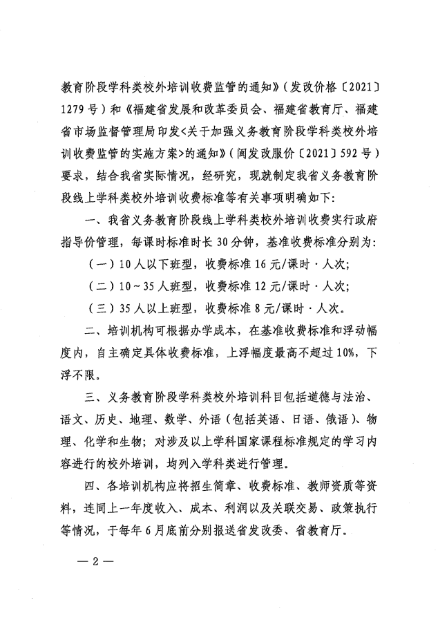 福建省線上學(xué)科類校外培訓(xùn)收費(fèi)標(biāo)準(zhǔn)