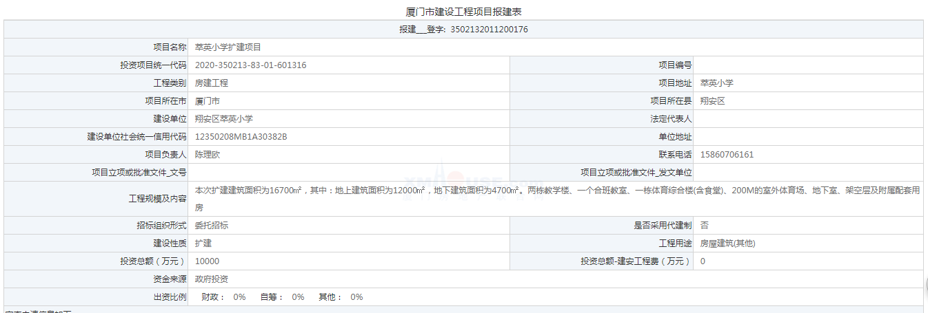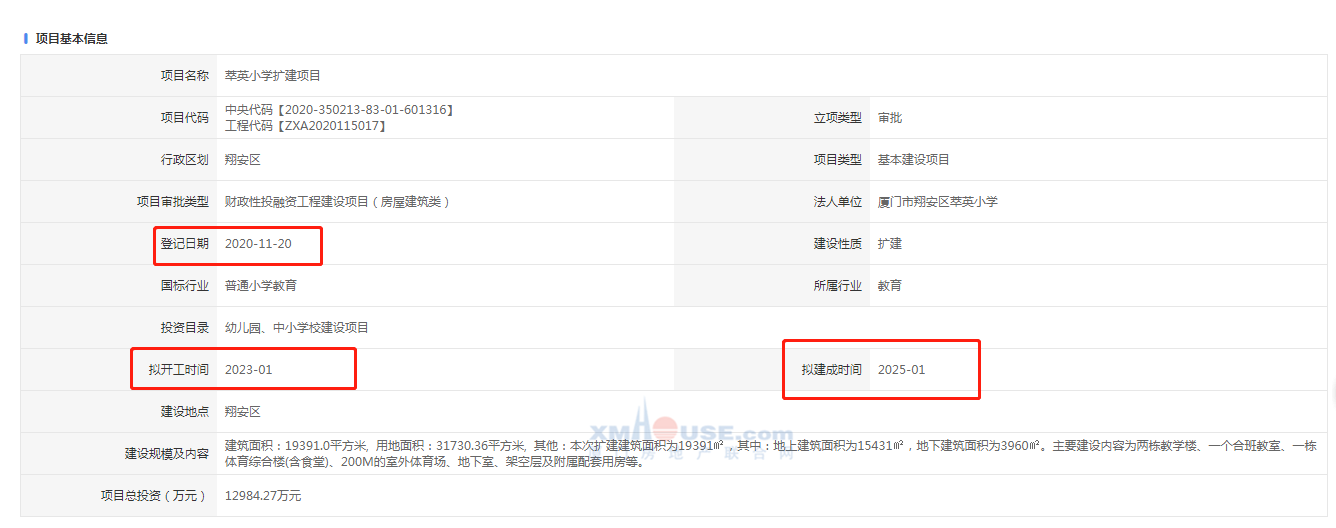 近日,翔安區(qū)萃英小學(xué)擴(kuò)建項(xiàng)目最新報(bào)建信息公布。
