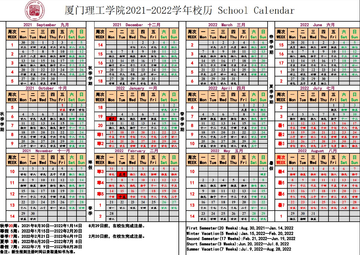 第一學(xué)期(共20周):2021年8月30日—2022年1月14日