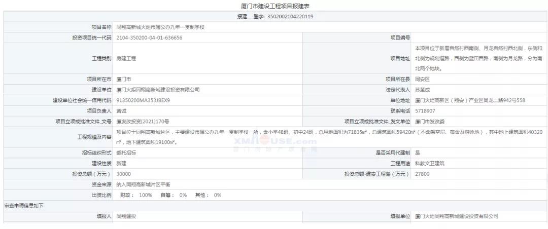 而在2021年5月,同翔高新城火炬市屬公辦九年一貫制學(xué)校報(bào)建信息也曾公布。