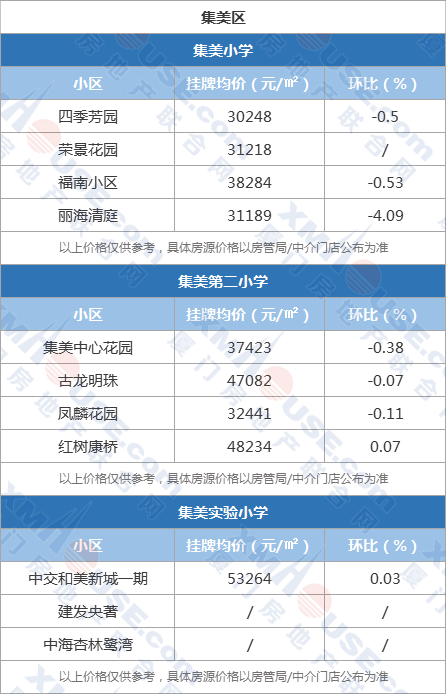 今天,我把廈門各區(qū)熱門小學(xué)周邊二手小區(qū)的房價漲跌情況,供家長們參考。