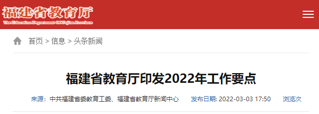 近日,福建省教育廳印發(fā)2022年工作要點,對2022年全省教育工作作出全面部署。