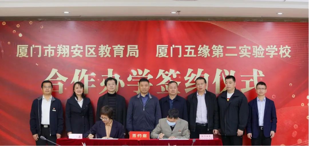 翔安區(qū)教育局與廈門五緣第二實驗學校合作辦學正式簽約,到場領(lǐng)導(dǎo)共同見證。