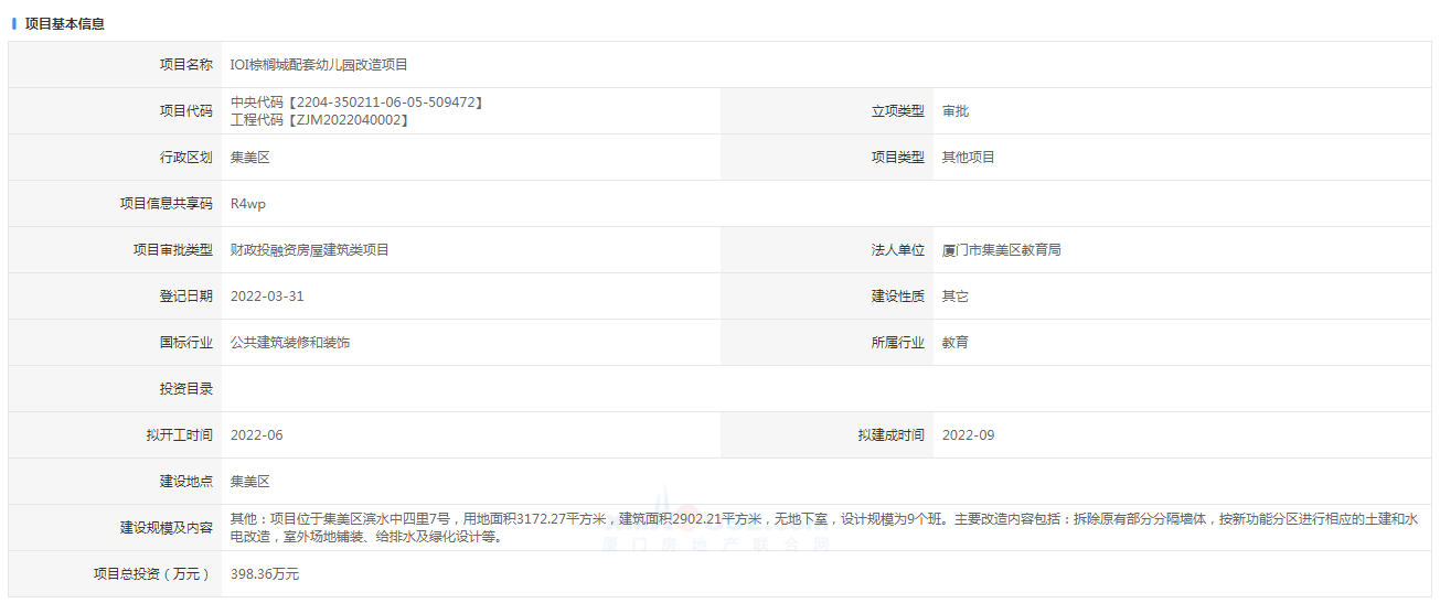 近日,IOI棕櫚城配套幼兒園改造項(xiàng)目報(bào)建信息公布。
