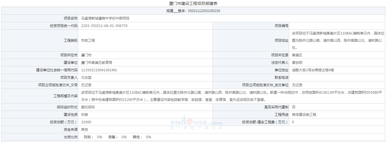 項目位于馬鑾灣新城集美片區(qū)1108AC編制單元內(nèi),具體位置為陳井北路以南、浦井路以西、陳井南路以北、浦林路以東。新建一所48班初中,總用地面積41361.90平方米,總建筑面積約55080平方米(其中校舍建筑面積約31200平方米)。主要建設(shè)內(nèi)容包括教學(xué)樓、實驗樓、食堂、體育館、室外運動場及地下室等。項目總投資約3.19億元。