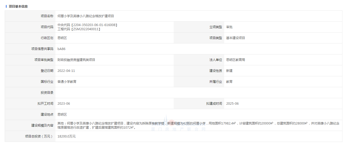 剛剛,何厝小學及英雄小八路紀念館改擴建項目報建信息公布。