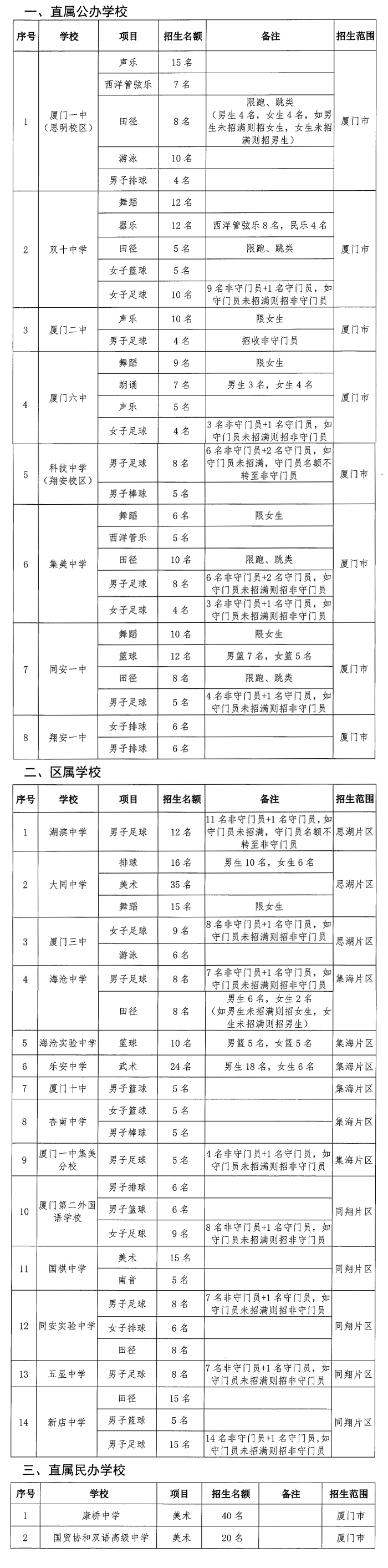 附件:2022年廈門(mén)市高中階段體育藝術(shù)類(lèi)自主招生學(xué)校名單