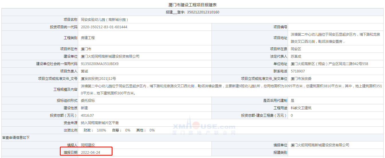 剛剛,同安實(shí)驗(yàn)幼兒園(高新城分園)項(xiàng)目最新報建信息公布。