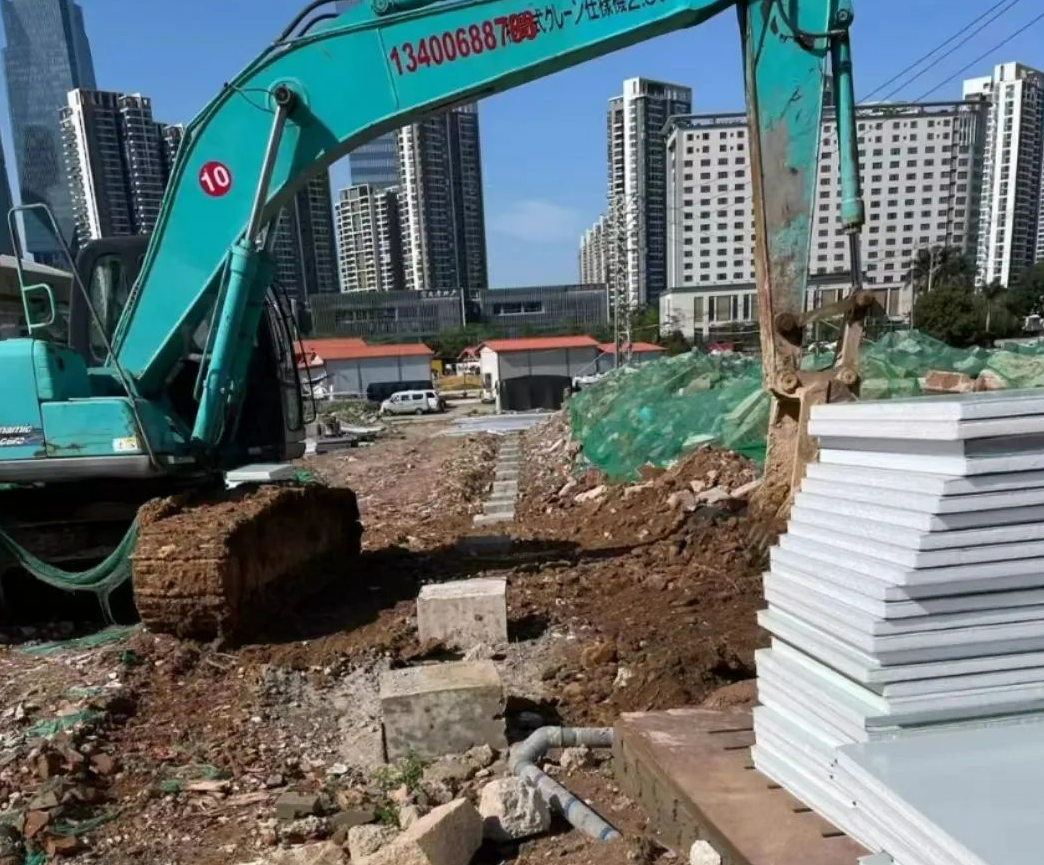 5月17日雨后初晴的第一天何厝嶺兜片區(qū)舊村改造項目施工現(xiàn)場又開始熱鬧了起來大型機(jī)械正在作業(yè)施工人員腳踩泥濘加緊施工的情景隨處可見