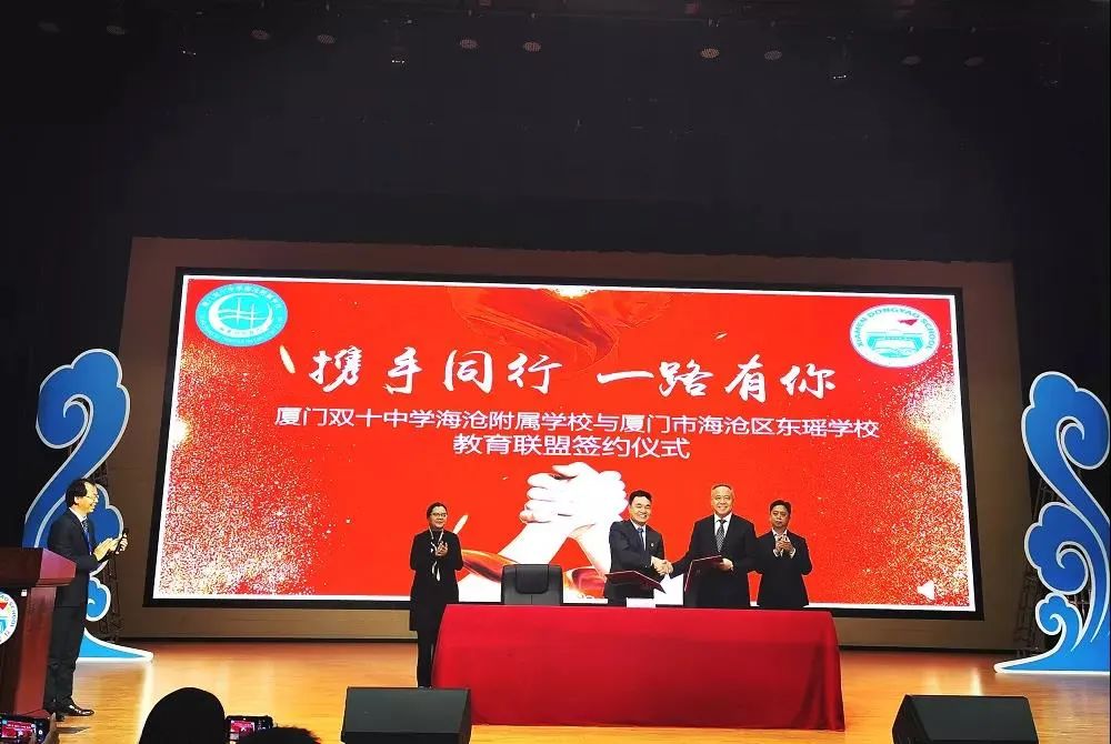 2020年12月,在海滄區(qū)教育局的指導(dǎo)和支持下,東瑤學(xué)校與雙十海附牽手成功,正式結(jié)成教育聯(lián)盟,就此開啟了兩校在管理機(jī)制、人才培養(yǎng)、教學(xué)科研等方面的長(zhǎng)期深入合作交流。