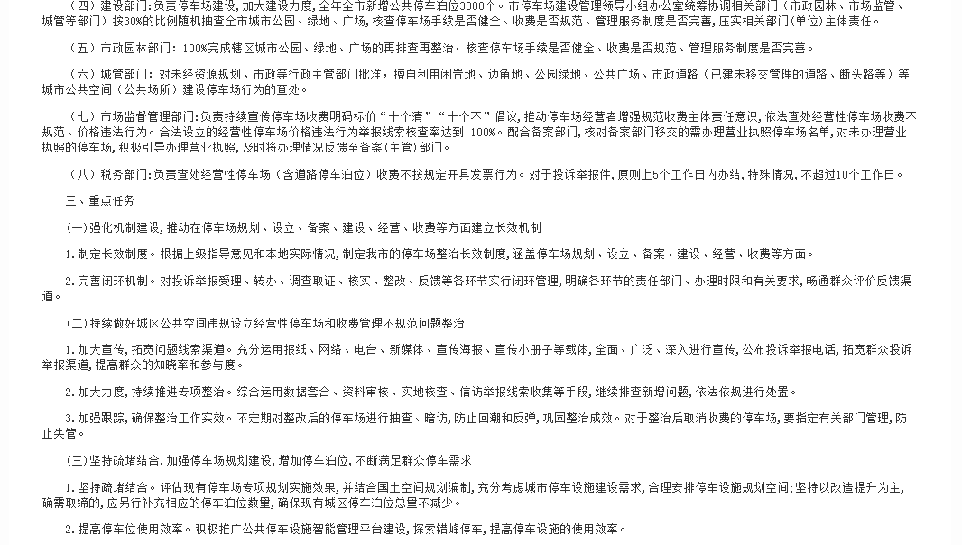建設(shè)部門負(fù)責(zé)停車場建設(shè),加大建設(shè)力度,全年全市新增公共停車泊位3000個。