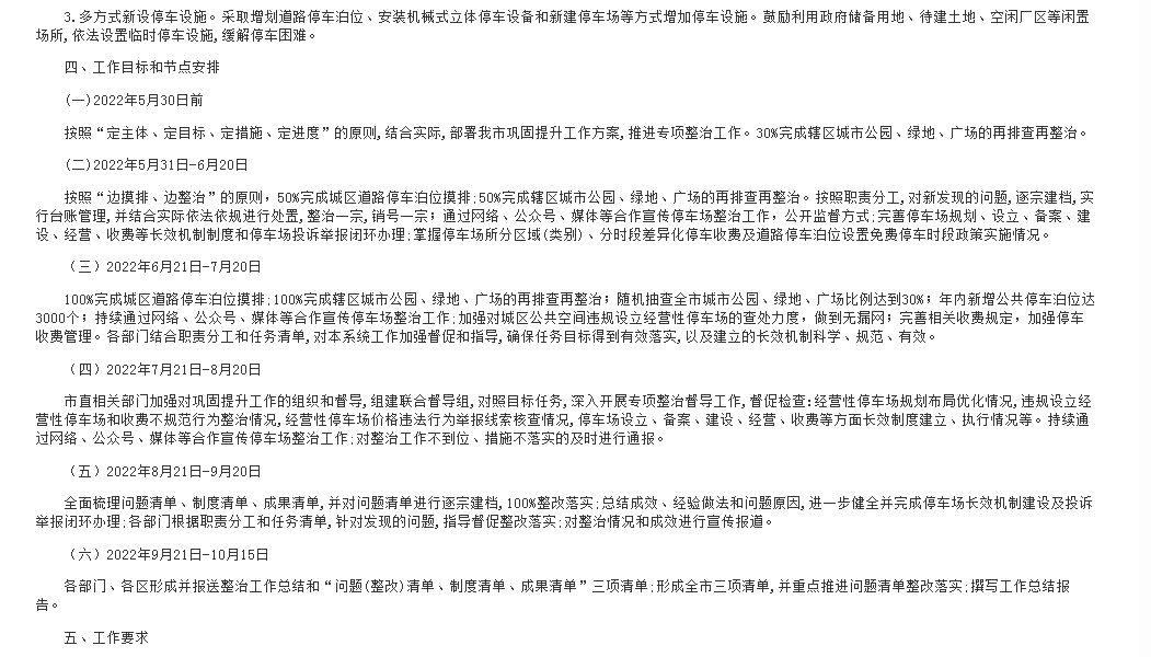 通知中表示,發(fā)改部門負(fù)責(zé)對實行政府定價(含政府指導(dǎo)價)管理的停車場所,全市100%實施分區(qū)域(類別)、分時段差異化停車收費(fèi)政策;全市道路停車泊位100%設(shè)置夜間22:00至次日早上7:30 的免費(fèi)停車時段。對需要納入政府定價(含政府指導(dǎo)價)管理的城區(qū)公共空間合法設(shè)立的經(jīng)營性停車場所,要完善相關(guān)收費(fèi)規(guī)定,加強(qiáng)停車收費(fèi)管理。