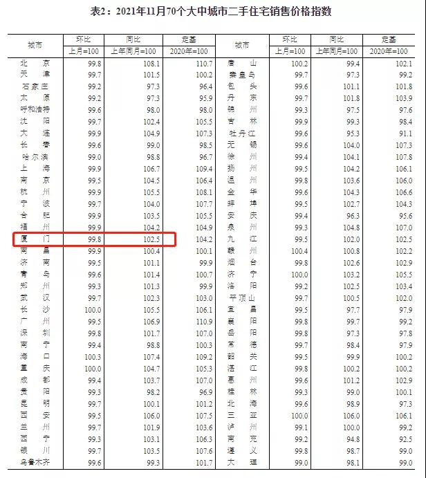 此外,二手住宅價(jià)格則連跌3個(gè)月。11月,廈門二手住宅價(jià)格環(huán)比下跌0.2%(10月環(huán)比下跌0.3%、9月環(huán)比下跌0.2%)。