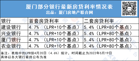 按4月20日發(fā)布的5年期以上LPR為4.6%執(zhí)行,即廈門首套房貸利率現(xiàn)在為4.7%,二套房貸利率則依然是5.4%。