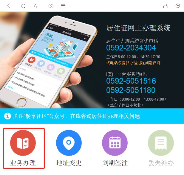 1、進入i廈門居住證網(wǎng)上辦理系統(tǒng),點擊“業(yè)務(wù)辦理”