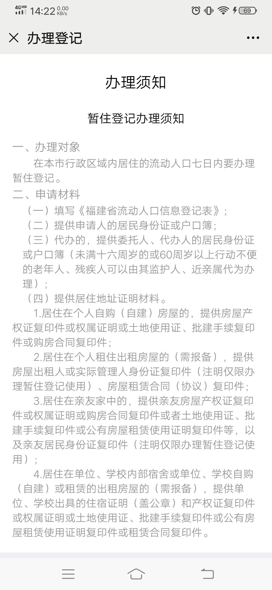 注:根據(jù)《福建省公安機關(guān)辦理暫住登記和福建省居住證工作規(guī)范》最新要求,居住在直系親屬或親友房屋辦理暫住登記或居住證無須上傳《住宿聲明》,原先因《住宿聲明》審核不通過的群眾,再次提交時可不需要上傳。
