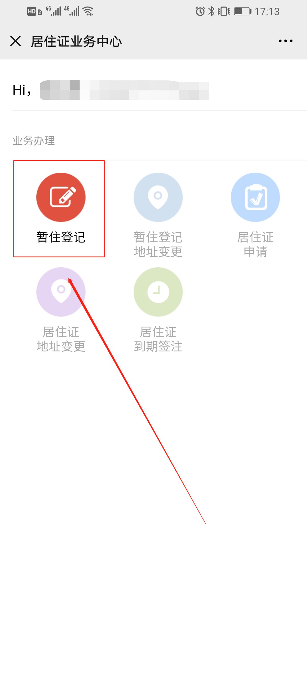 5、然后進(jìn)入,點(diǎn)擊“暫住登記”;