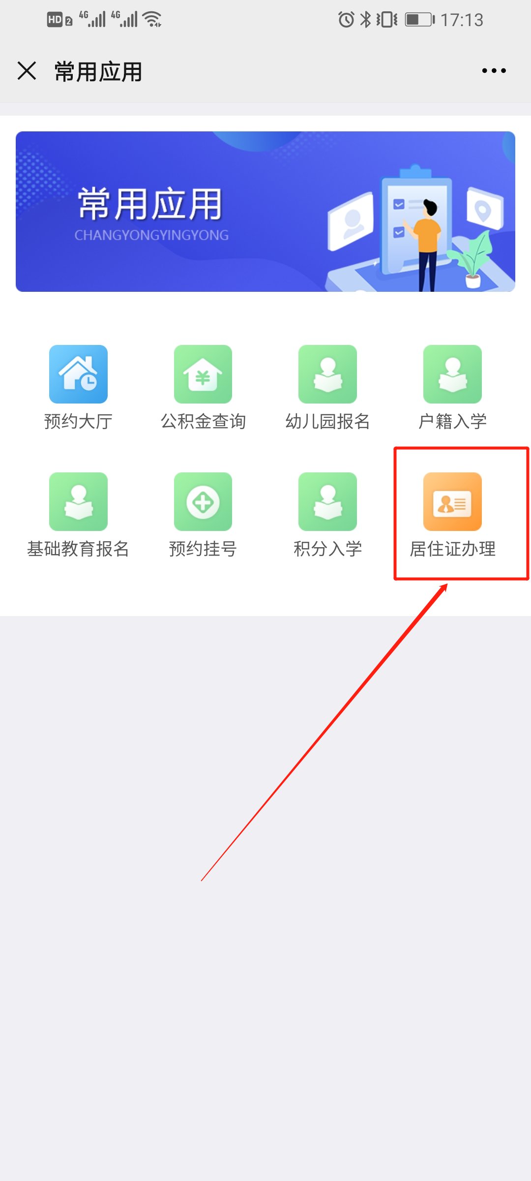 3、然后進(jìn)入,找到并點(diǎn)擊“居住證辦理”;