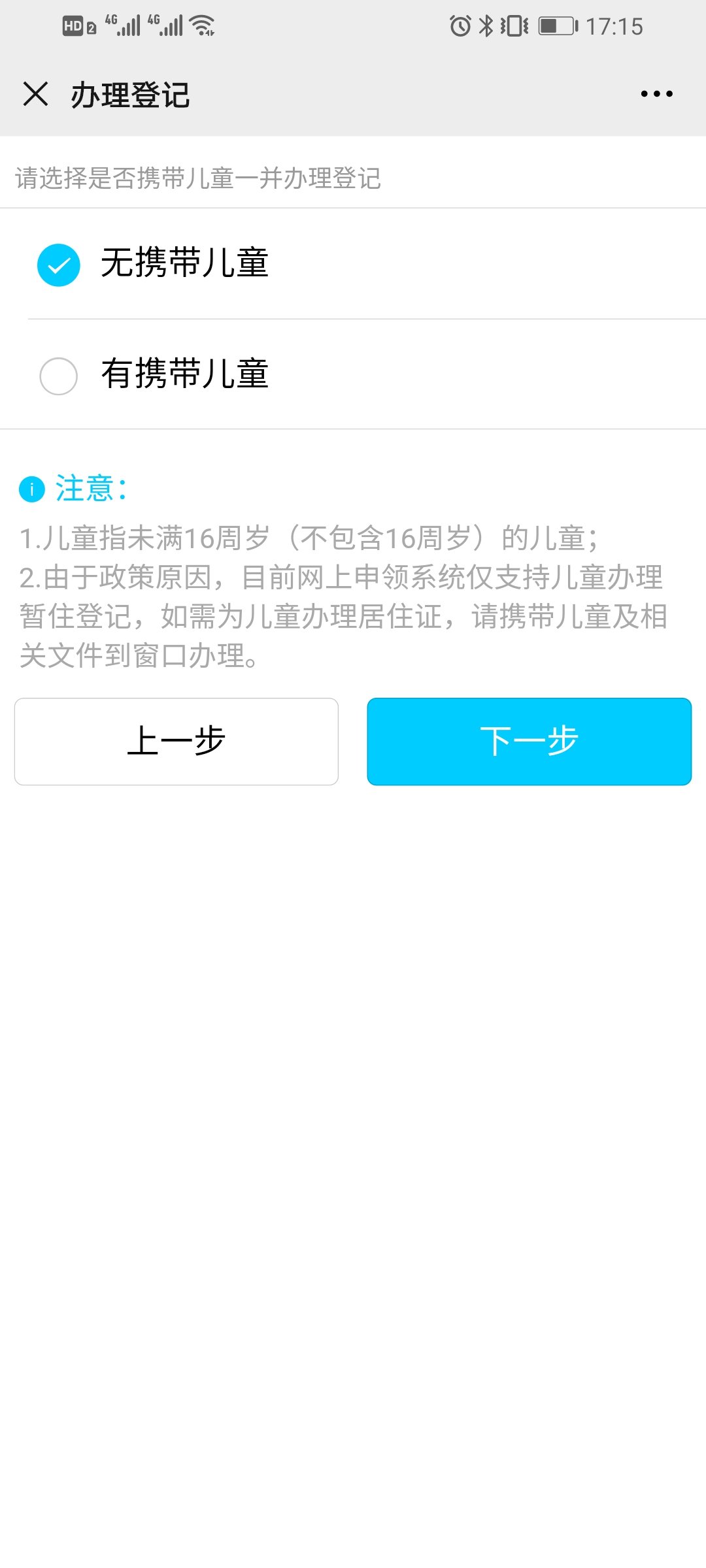 7、然后進(jìn)入選擇是否攜帶兒童,點(diǎn)擊“下一步”;