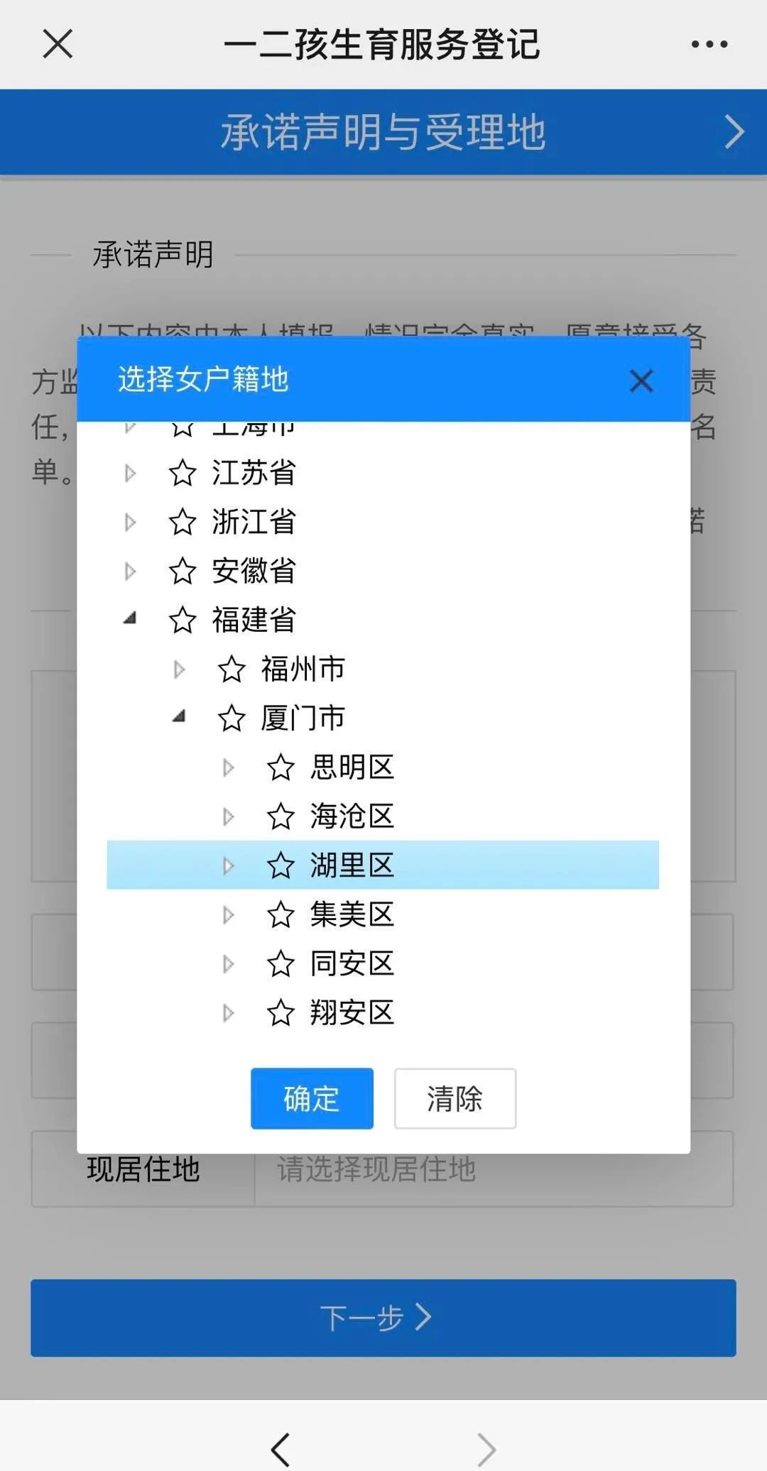 一二孩生育服務在線登記流程