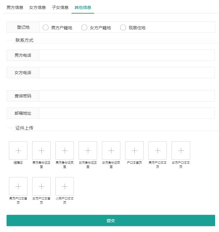 ?3)男方(女方)民族:民族為下拉選擇框,請跟據(jù)自己的實際情況選擇。