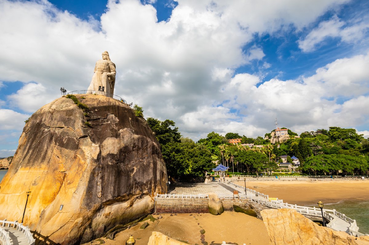 皓月園建在鼓浪嶼東南的覆鼎海濱,占地兩萬平米,是由福建省政府和廈門市政府共建的鄭成功主題紀念園,園中最著名的就是高15.7米、重1617噸的鄭成功石像,該石像建成時是國內(nèi)最大的歷史人物雕像,于1985年8月建成,由23層625塊花崗巖壘成,雕像內(nèi)由118根粗鋼筋強力支撐,并向下扎入巖層深達3米。