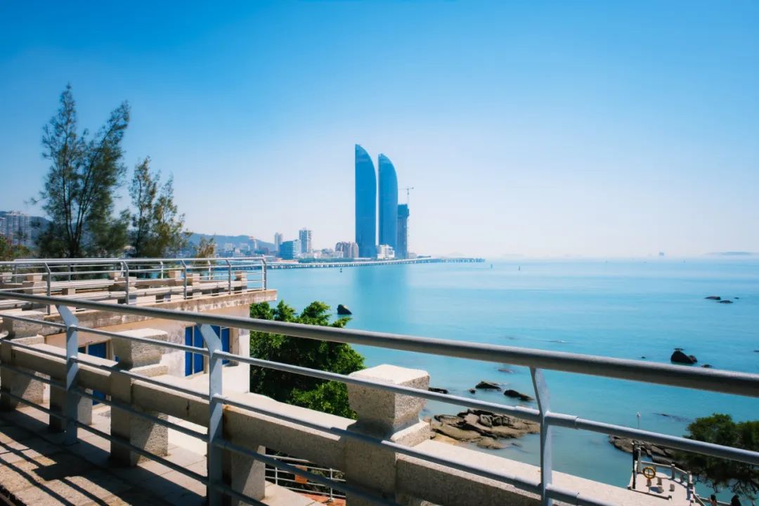 鄭公腳邊卻是看海景的好地方,往北可見鷺江道畔的高樓大廈,往南高大凌厲的雙子塔威武的立在碧波之間。