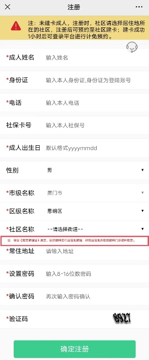 3、點擊“未建卡兒童/成人注冊“,進入界面進行信息填寫。