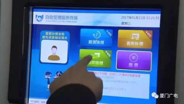 在照相隔間旁的機器上,選擇好要辦理的業(yè)務按照提示輸入資料,完成指紋采集;