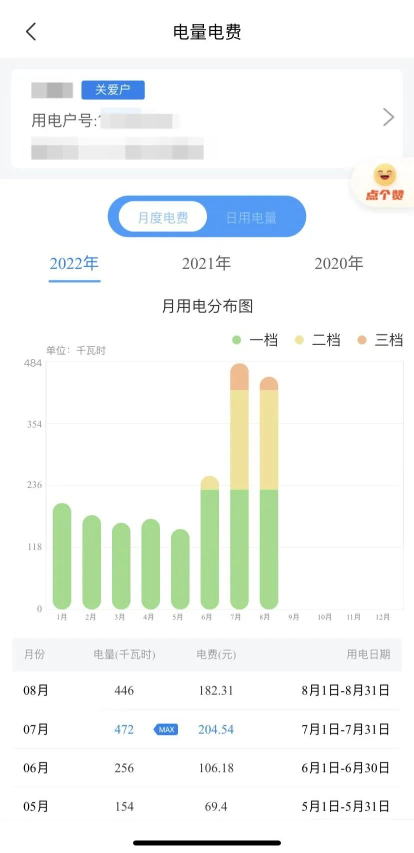 電量電費查詢:也可以點擊首頁-電費賬單,查看上個月的合計電量電費。