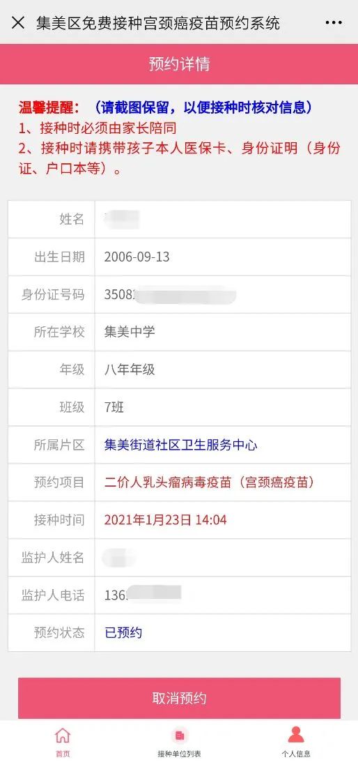 第三步:預約成功后請務必按規(guī)定時間前往預約點進行接種。