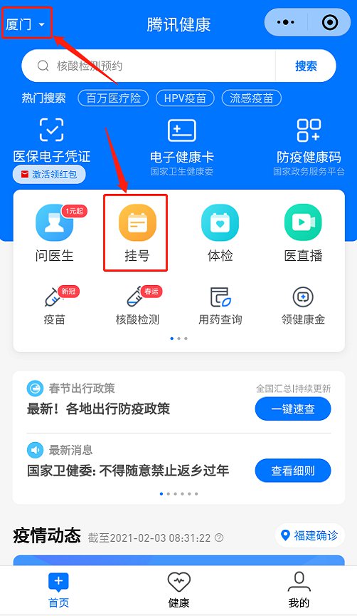 微信搜索“騰訊健康”,或在微信公眾號點擊“健康掛號領(lǐng)健康分”進行自助預約。