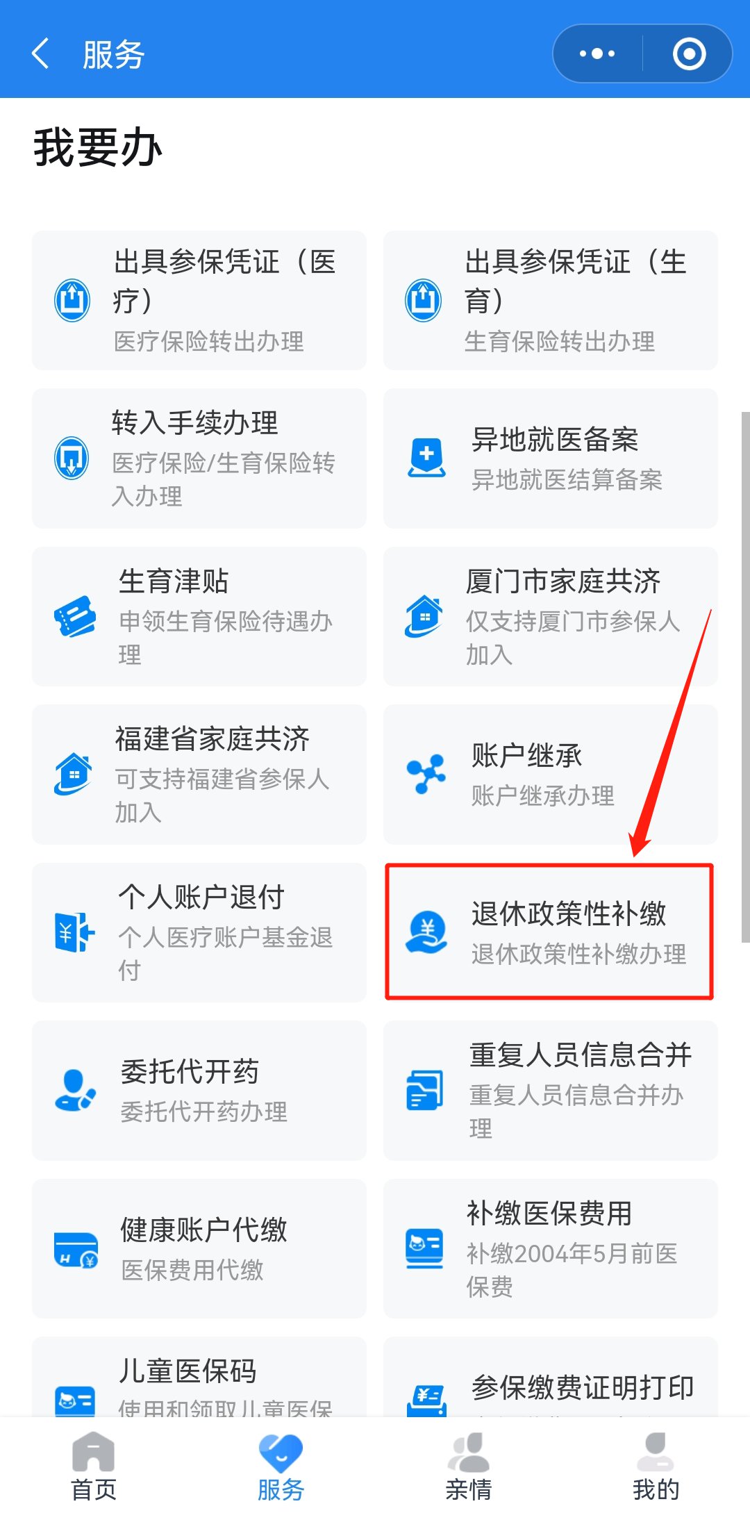 ③選擇“我要辦”欄目下的“退休政策性補繳”