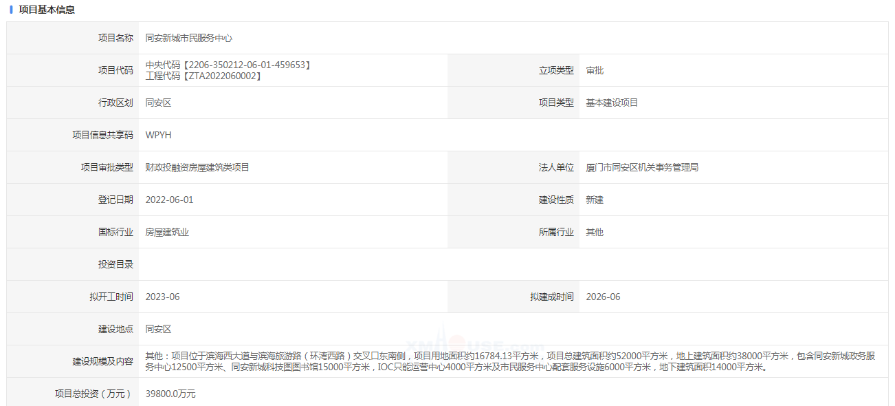 近日,同安新城市民服務(wù)中心報(bào)建信息公布。