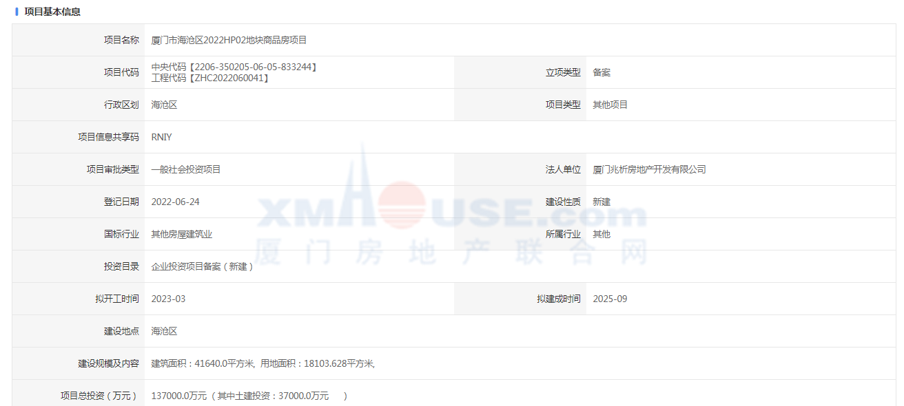 近日,廈門市海滄區(qū)2022HP02地塊商品房項(xiàng)目報(bào)建信息公布。
