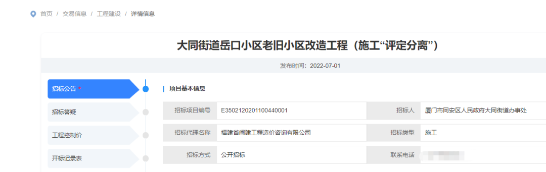 7月1日,大同街道又有2個(gè)小區(qū)的改造工程招標(biāo):大同街道岳口小區(qū)老舊小區(qū)改造工程(施工“評(píng)定分離”)公開(kāi)招標(biāo)。