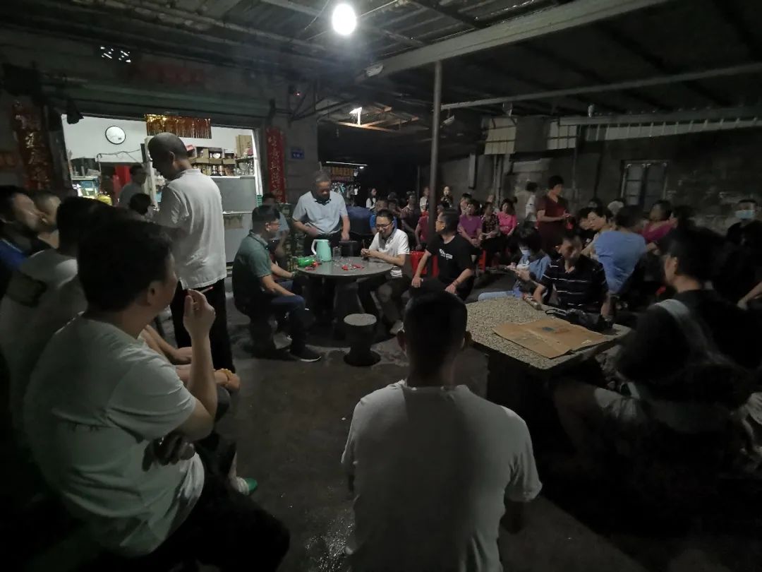 祥平街道人大工委主任洪仁偉、黨工委副書記蔡力、辦事處副主任葉江平等項目征拆工作組成員,利用晚上時間入村宣傳征拆政策,為村民答疑解惑。