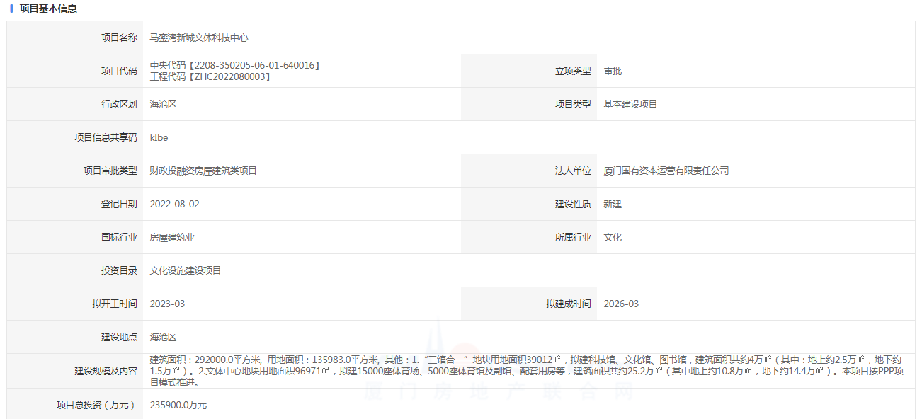 近日,馬鑾灣新城文體科技中心項(xiàng)目報(bào)建信息公布。